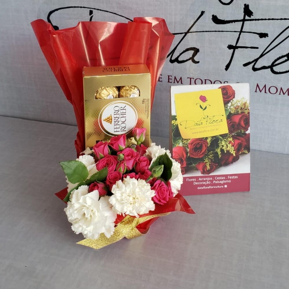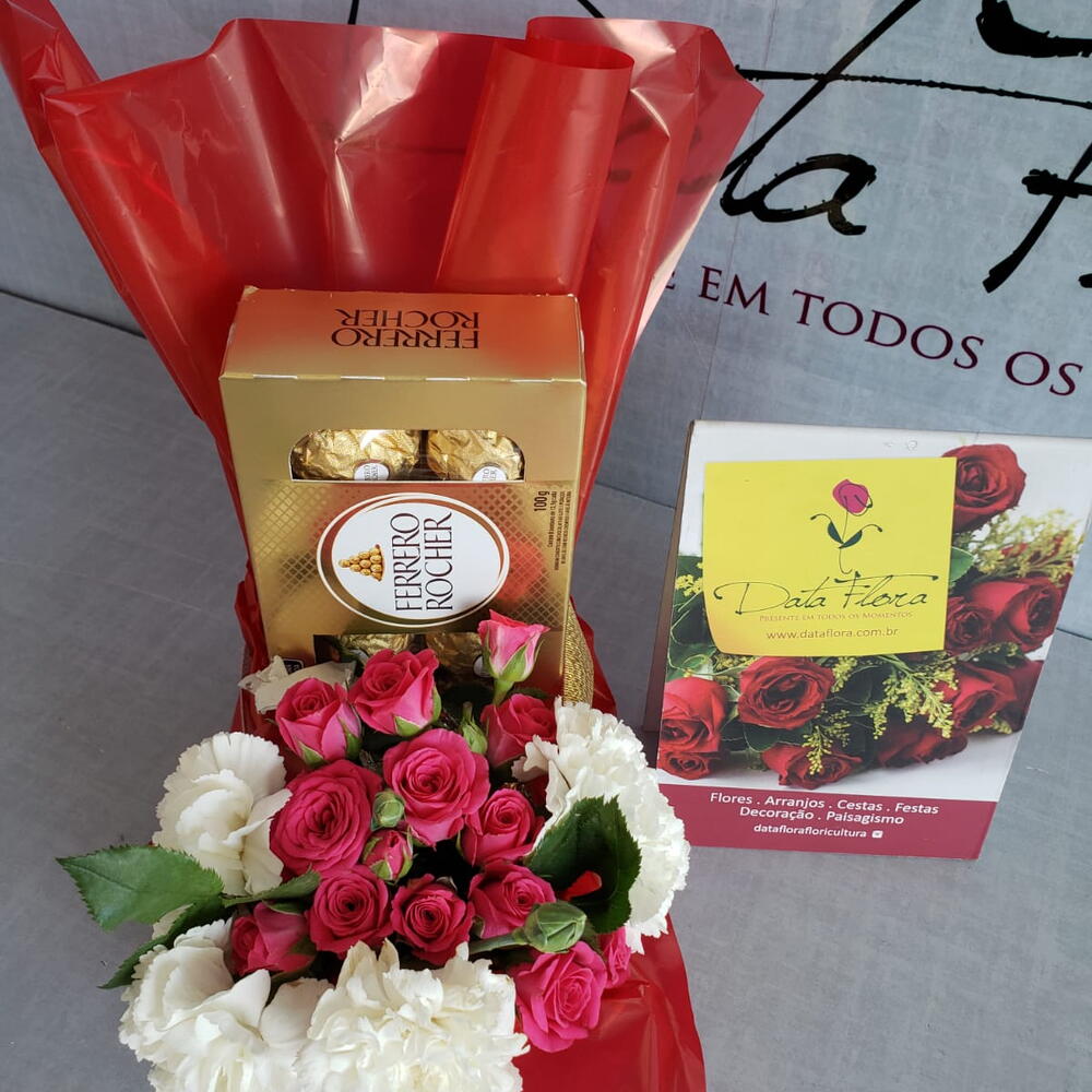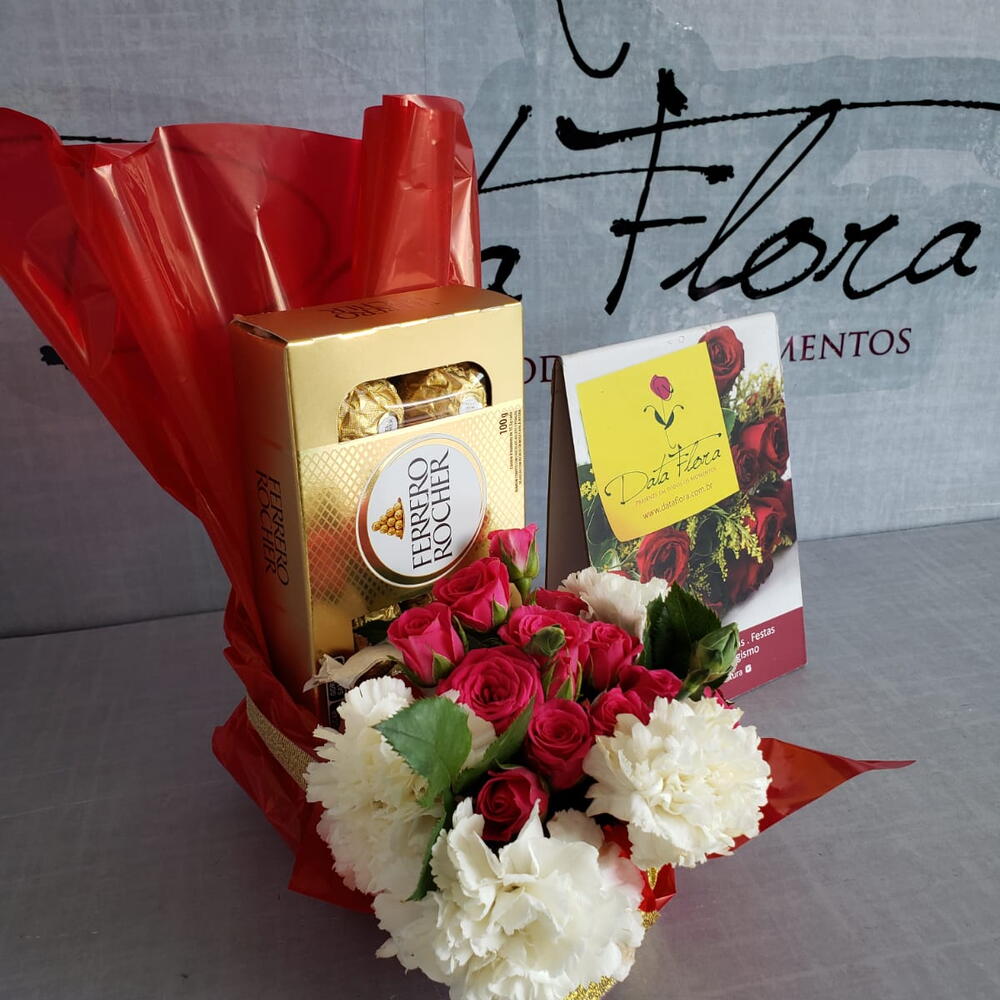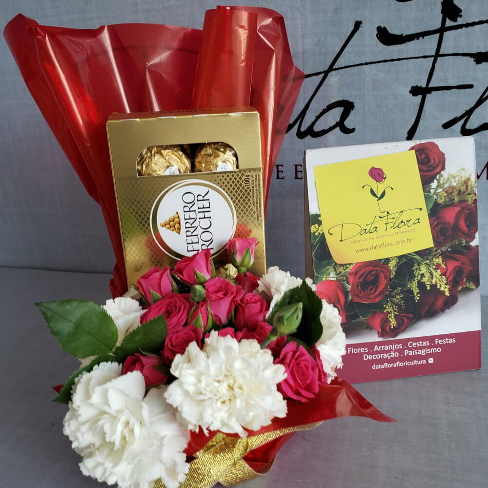 Surpreenda seus entes queridos com este presente especial e delicado. Incluído nesse pacote, encontra-se uma caixa com 8 unidades de nossos sofisticados chocolates Ferrero Rocher, conhecidos pelo seu sabor inigualável e uma cuidadosa escolha de 6 variadas flores do campo, proporcionando um belo contraste de cores e perfumes. Este presente combina a doçura dos chocolates com a beleza da natureza, um presente perfeito para qualquer ocasião.