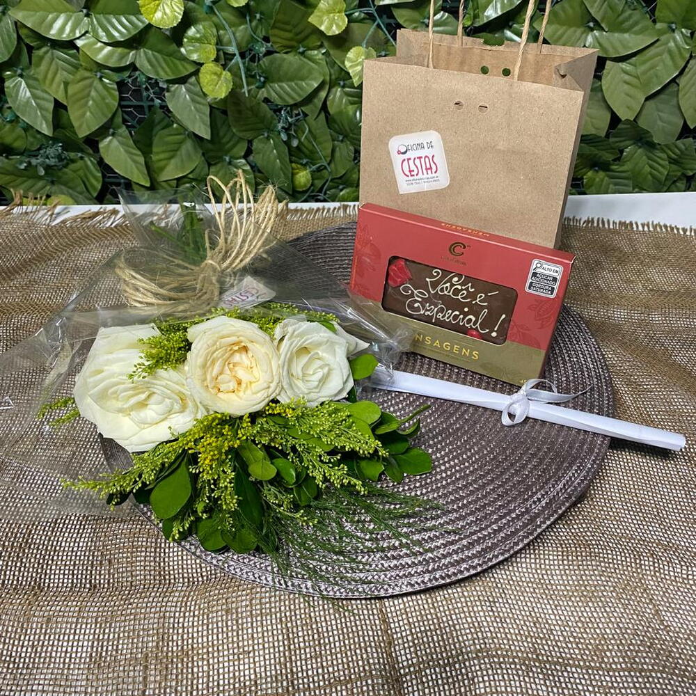 O Combo Especially White é a escolha ideal para quem deseja transmitir sentimentos puros, verdadeiros e cheios de significado. Com um mini buquê delicado de 3 rosas brancas, um delicioso chocolate Doce Mensagem 45g e uma cartinha personalizada, este presente é perfeito para demonstrar afeto com elegância e leveza. As rosas brancas são símbolo de pureza, paz, perdão, espiritualidade e novos começos. Elas representam gestos sinceros, tornando esse combo ideal para momentos que pedem suavidade e delicadeza. Sejam pedidos de desculpa, homenagens, agradecimentos ou surpresas inesperadas, o Especially White toca o coração de quem recebe. O chocolate Doce Mensagem 45g adiciona um toque de doçura e carinho, despertando emoções através do sabor. A cartinha com mensagem personalizada completa a experiência com palavras que eternizam o momento, tornando tudo ainda mais especial.