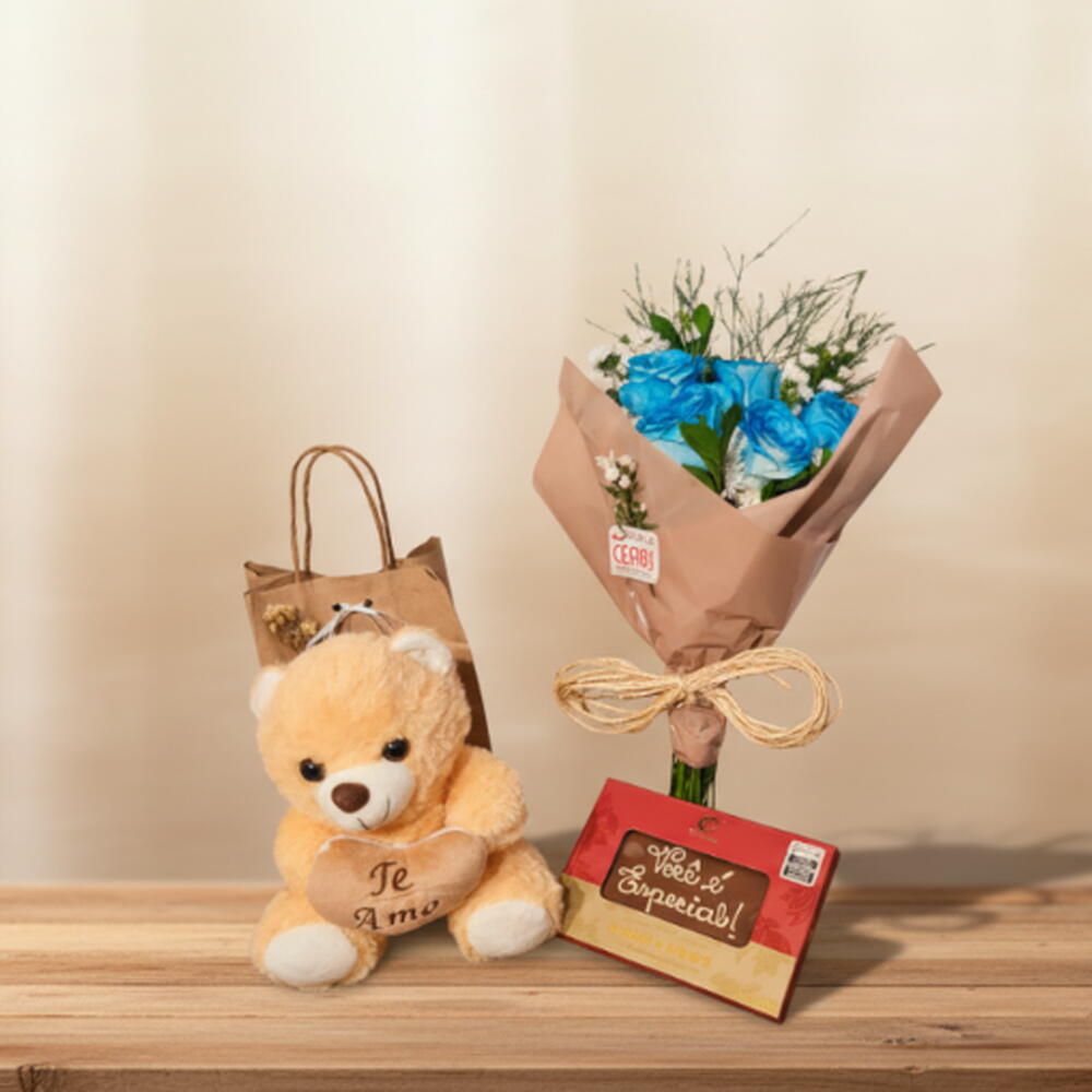 O Presente Perfeito que Fala Mais que Mil Palavras Quando se trata de expressar sentimentos genuínos, nada supera um presente que combina delicadeza, doçura e abraço caloroso. Este conjunto exclusivo reúne os três elementos universais do amor: a beleza intemporal das rosas, a doçura que derrete no coração e o aconchego de um abraço macio. As 5 rosas que compõem este buquê são cuidadosamente selecionadas e entregues em perfeito estado de frescor. Você escolhe a cor que melhor representa seu sentimento: o vermelho paixonante da paixão genuína, o rosa delicado da admiração e carinho, o branco da pureza e sinceridade, ou qualquer outra tonalidade que toque seu coração. Cada pétala é uma declaração silenciosa de afeto. O chocolate doce personalizado (45g) é o toque de magia que faz este presente ser inesquecível. Incluindo o nome da pessoa que vai receber, este chocolate ganha significado especial — é como se você tivesse inscrito seu sentimento em cada mordida. Uma doçura que combina sabor requintado com emoção genuína. A pelúcia de 20cm completa a tríade perfeita, oferecendo o abraço tangível que continua oferecendo conforto muito depois do buquê murcharse. É um companheiro macio que lembra, todos os dias, que você se importa. Por Que Este Presente é Irresistível Para Namorados e Cônjuges: Expressa amor renovado sem artificialidades. A combinação de flores + chocolate + pelúcia é a fórmula clássica e sofisticada que nunca falha. Para Aniversários: Celebre o dia especial com um presente que reúne romantismo, doçura e conforto — perfeito para qualquer idade. Para Surpreesas Inesperadas: Mostrar que você se importa não precisa de uma ocasião especial. Este presente diz você merece ser feliz de maneira envolvente. Para Declarações e Pedidos Especiais: Prepare o cenário perfeito para aquele momento importante — rosas, chocolate e pelúcia criam a atmosfera ideal. Para Reconciliações: Após desentendimentos, este presente é um pedido genuíno de volta com elegância e doçura. Personalização Que Torna Único O chocolate com nome personalizado transforma este presente de genérico em exclusivo. Aquela pessoa especial verá seu nome inscrito no chocolate — um detalhe que prova que o presente foi pensado especificamente para ela, não é algo comprado no último minuto. Esta personalização torna cada entrega única e memorável. Qualidade e Frescor Garantidos Todas as flores são selecionadas em perfeitas condições de frescor e entregues com cuidado profissional. O chocolate é de qualidade premium, e a pelúcia é macia e durável. Cada item passa por rigoroso controle de qualidade antes de chegar às mãos de quem você ama. Entrega Rápida — Em Até 3 Horas Localizado em Recife-PE, entregamos em toda a região metropolitana com agilidade incomparável. Pediu? Em até 3 horas o presente está sendo abraçado por quem merece. Ou, se preferir, retire pessoalmente em nossa floricultura após confirmar o pedido. Sua conveniência é nossa prioridade. Beleza Singular e Detalhes Exclusivos Cada buquê é montado manualmente por profissionais que entendem que um presente é mais que um objeto — é uma mensagem. A escolha de cores das rosas, a textura do papel de embrulho, a mensagem personalizada no chocolate: tudo é pensado para criar um momento inesquecível. Nenhum presente sai de nossas mãos sem excelência.