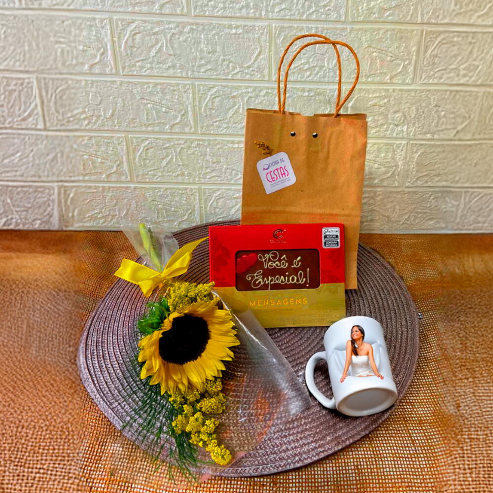 Um presente que irradia luz e carinho O Combo Sol Café é a escolha perfeita para quem deseja surpreender com delicadeza, significado e beleza. Cada detalhe foi pensado para transmitir afeto: o girassol simboliza alegria, otimismo e energia positiva; o chocolate representa doçura e conforto; e a caneca personalizada eterniza o gesto com um toque único e especial. Mais do que um presente, o Combo Sol Café é uma mensagem de amor, amizade e gratidão. Ideal para comemorar aniversários, agradecer, demonstrar carinho ou simplesmente iluminar o dia de alguém querido. Detalhes que fazem toda diferença Personalização exclusiva A caneca em porcelana (325 ml) pode ser personalizada com nome, foto ou frase, tornando o presente verdadeiramente único e inesquecível. Uma lembrança que continua presente no dia a dia de quem recebe, trazendo boas memórias a cada gole de café. Doçura e simbolismo O chocolate “Doce Mensagem” de 45 g adiciona o toque de sabor e aconchego, enquanto o girassol solitário carrega o simbolismo da luz e da vitalidade — perfeito para transmitir energia positiva e bons sentimentos. Cartinha personalizada Acompanha uma cartinha com a sua mensagem, permitindo expressar sentimentos de forma sincera e memorável. Entrega rápida e qualidade garantida Com a Oficina de Cestas, você tem a tranquilidade de presentear com produtos cuidadosamente montados, com flores frescas e acabamentos impecáveis. Fazemos entregas rápidas em toda a região metropolitana, garantindo que sua surpresa chegue com pontualidade e qualidade.