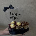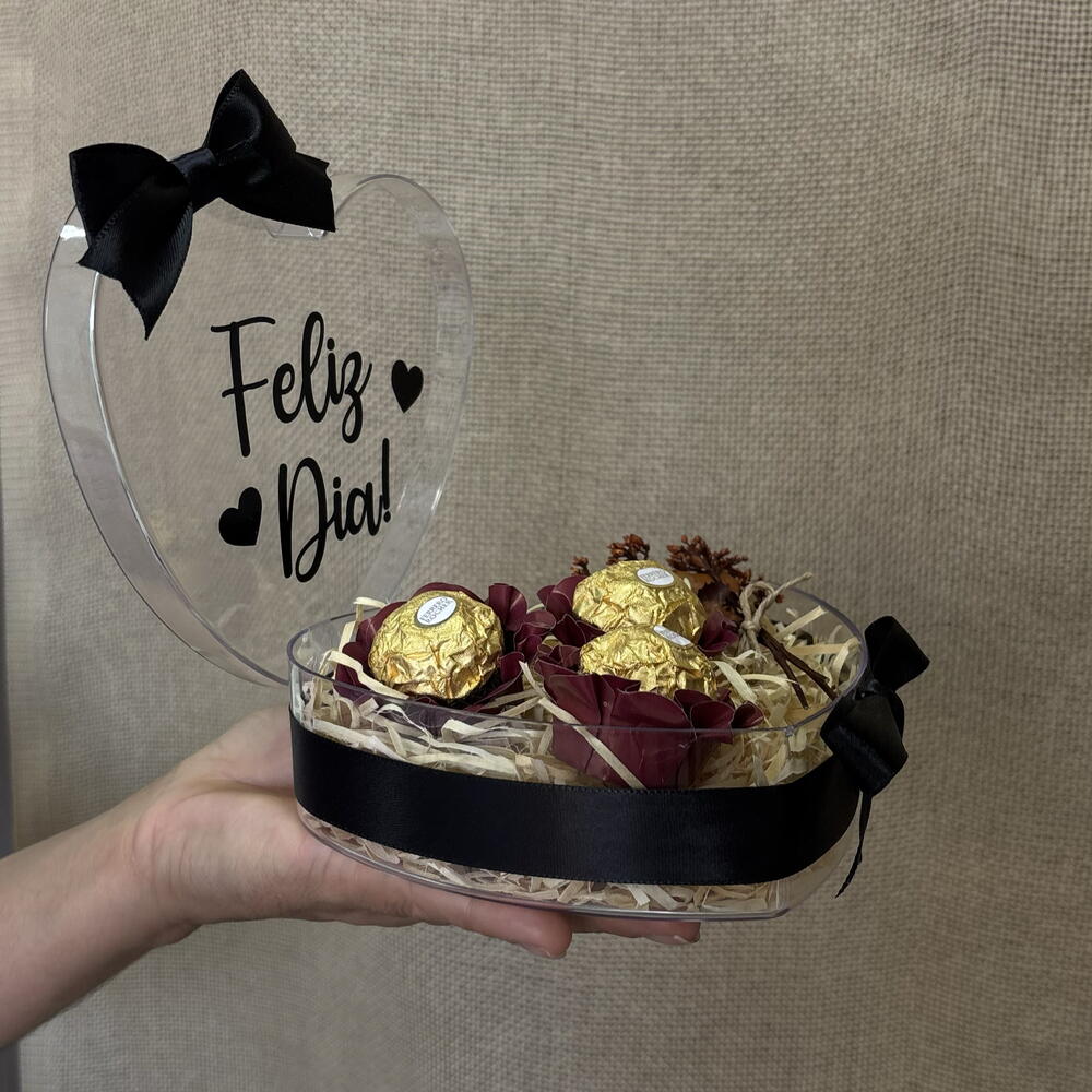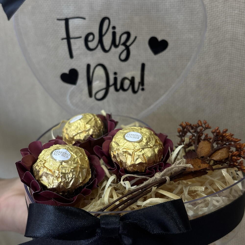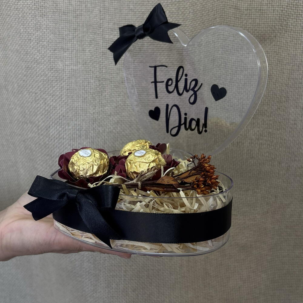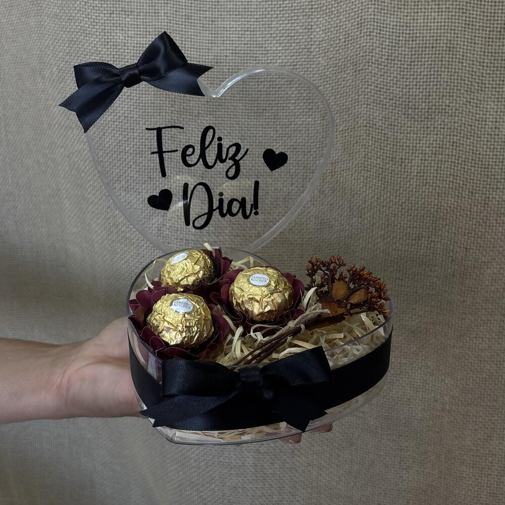 ferrero rocher - 3 pcs ramo de flores desidratadas - 1 pcs coração de acrílico decorado - 1 pcs personalização “feliz dia!” - 1 pcs