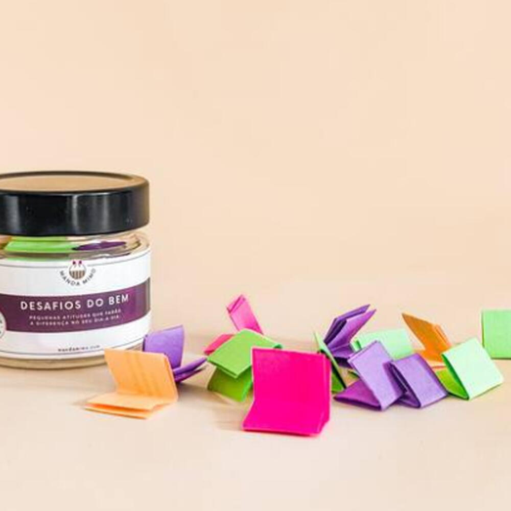 Quer fazer a diferença e surpreender alguém hoje com um produto super criativo e único? Os desafios geralmente são ações que melhoram o Dia da pessoa e de todos que convivem com ela. Abaixo temos algumas opções de desafios que podem estar dentro de cada papelzinho: Desafio do Dia: Fazer um detox do celular por 2 horas seguidas hoje. Foque no presente e durante esse tempo, observe as coisas e pessoas a sua volta. Desafio do Dia: Pensar em alguém da sua família que você não tem falado nos últimos dias.. Ligue ou envie uma mensagem só para se fazer presente e saber se está tudo bem. Isso vai mudar o Dia dessa pessoa e com certeza o seu! Desafio do Dia: Os dias passam e as vezes deixamos de falar com pessoas que a a companhia nos faz bem. Hoje o desafio é enviar uma mensagem para alguém que você sente saudades. Presentes criativos mimos cestas presentes românticos para amigos trabalho motivação.