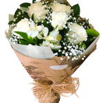 rosa brancas - 5 pcs alstromélias - 1 pcs gipsófila e folhagem - 1 pcs