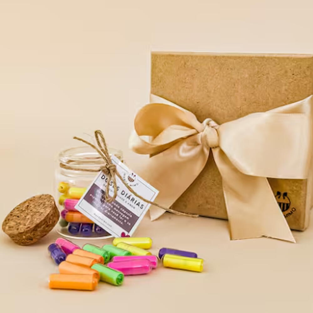 Nossos famosos potinhos, são uma exclusividade e criação Manda Mimo. Eles possuem 31 mensagens positivas dentro de cápsulas, para ler diariamente durante um mês e ter um mês incrível!! Pode ser enviado para qualquer pessoa que você queira ver bem e animada! Aqui vão alguns exemplos das mensagens que podem conter dentro das cápsulas: Tudo passa, até mesmo as coisas boas. Então viva o hoje e aproveite as fases da vida, todas elas são importantes! Quando tudo der certo, valorize. Quando der errado: lembre-se de que vai passar! Pense algo bom sobre alguém hoje e faça com que essa pessoa saiba disso. Não existe um Dia melhor que hoje, nem um momento melhor do que agora! Pare o que estiver fazendo e faça algo por você, o que te faria mais feliz hoje? Você atrai o que transmite. Espalhe pelo menos uma boa notícia que você recebeu nos últimos dias. Adicione uma caixinha e esse mimo vai ser sucesso!