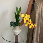 Deixe a natureza tocar suavemente sua decoração comeste arranjo de flores composto por uma elegante orquídea e folhagem fresca, harmoniosamente aninhadas em um vaso clássico. Perfeito para iluminar qualquer ambiente, este arranjo será um verdadeiro ponto de destaque, trazendo um toque de sofisticação e frescor onde quer que seja colocado.