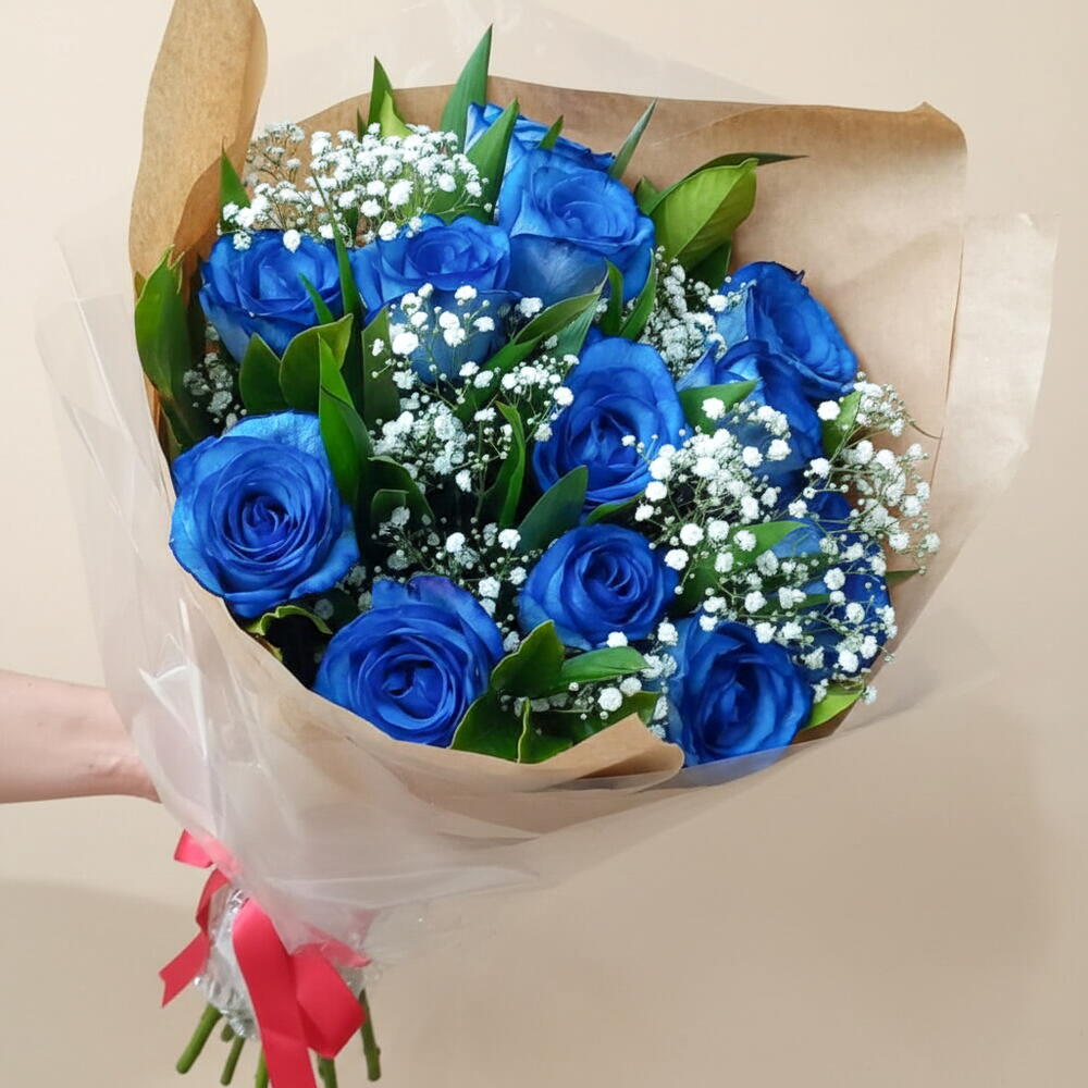 Encante-se com este buquê composto por 12 rosas azuis vibrantes, realçadas por um toque delicado de uma unidade de gypsofila. O equilíbrio perfeito entre o extravagante e o sofisticado, ideal para tornar qualquer ocasião especial, inesquecível.