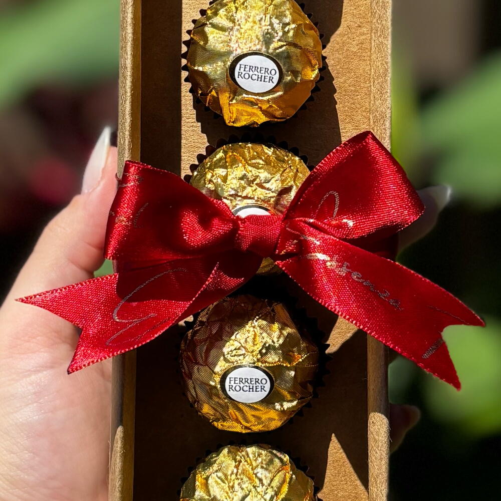 rosa - 1 pcs ferrero rocher - 6 pcs laço - 1 pcs box cartonada - 1 pcs