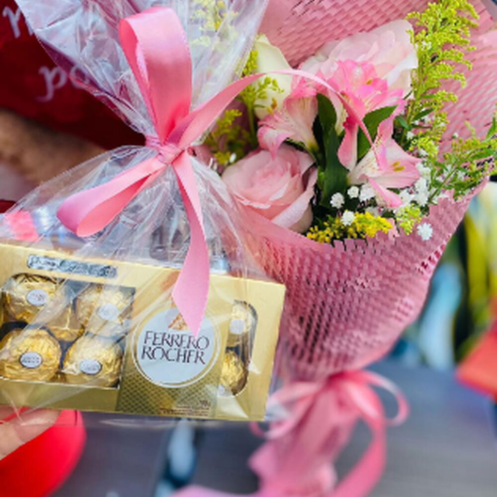 Пresenteie alguém especial com este item sofisticado e requintado. Embalado com um exclusivo Ferrero Rocher, perceberá o gosto rico e cremoso quando abrir a caixa. Juntamente com três unidades do Encanto Rosé, cada gole é uma nova experiência e o levará a uma viagem de sabor incomparável. Para complementar este presente, incluímos uma unidade singular de folhagem para um toque de natureza e encanto. Tudo é cuidadosamente embalado em uma caixa personalizada e decorada com um laço elegante, garantindo um presente tão belo por fora quanto por dentro. Ideal para todas as ocasiões, o receptor deste presente apreciará cada detalhe pensado com carinho.
