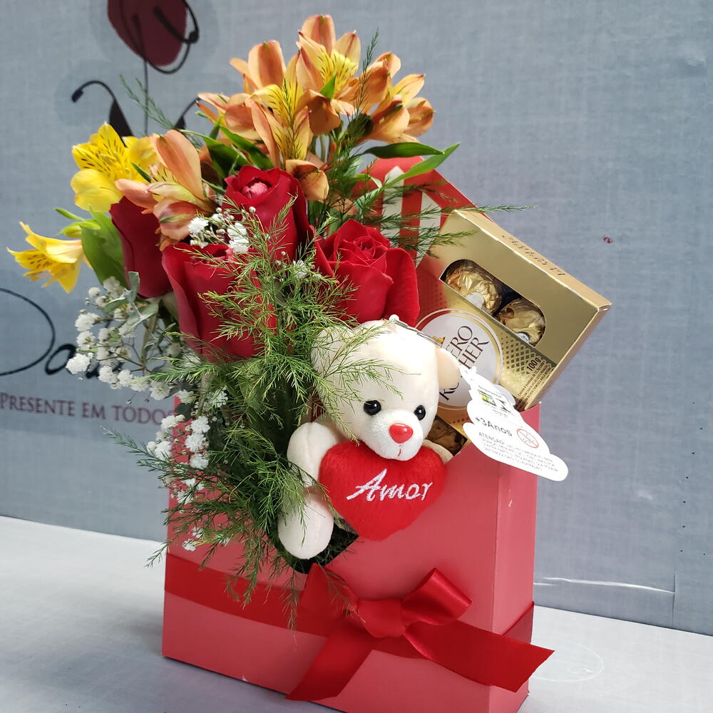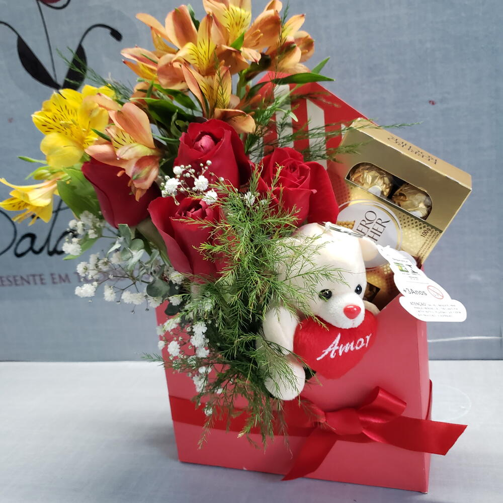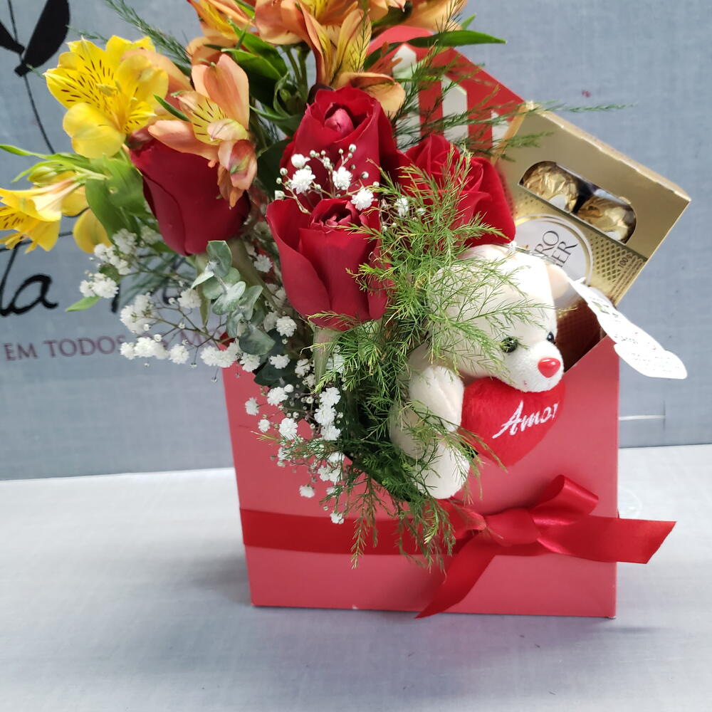 Este Kit de Presente é perfeito para expressar carinho e surpreender alguém especial. Composto por um chaveiro de pelúcia, que aconchega com sua maciez em cores variadas, a graça também está presente em cinco unidades de flores variadas - é possível verificar a disponibilidade das espécies via chat. Para completar, uma caixa com oito unidades do irresistível Ferrero Rocher, garantindo um toque de doçura à surpresa. Garanta este presente encantador e repleto de sentimentos bons!