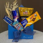 Descubra o aconchego de receber um Kit de Presente excepcionalmente selecionado e embalado com amor. O kit inclui uma variedade de delícias que são perfeitas para qualquer ocasião: um delicioso Amendoim Japonês para satisfazer o seu gosto exótico, um Bis Xtra 45g para adicionar doçura à sua pausa, um Oreo 36g para saborear a infância, uma lata de Red Bull 250ml para lhe dar asas, um Envelope Decorado para adicionar um toque pessoal ao presente e Lacta Shot para uma explosão de sabor de chocolate. Este kit de presente é a combinação perfeita de sabor, energia e emoção perfeitamente embalados para si.