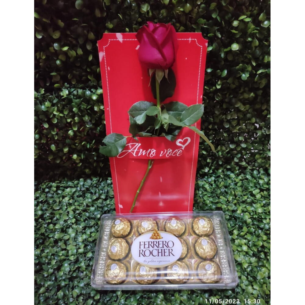 Encante alguém especial com este lindo kit de presente! Inclui uma sedutora rosa vermelha, considerada um símbolo universal do amor. Para torná-lo ainda mais especial, adicionamos um cartão de Eu te amo para você expressar seus sentimentos. Para adoçar o gesto, incluímos uma deliciosa caixa do famoso Ferrero Rocher, um prazer indulgente para os amantes de chocolate. Este kit é uma forma perfeita e convincente de mostrares teu amor de maneira única e inesperada. Ideal para aniversários, datas comemorativas ou apenas para mostrar o quanto você se importa.