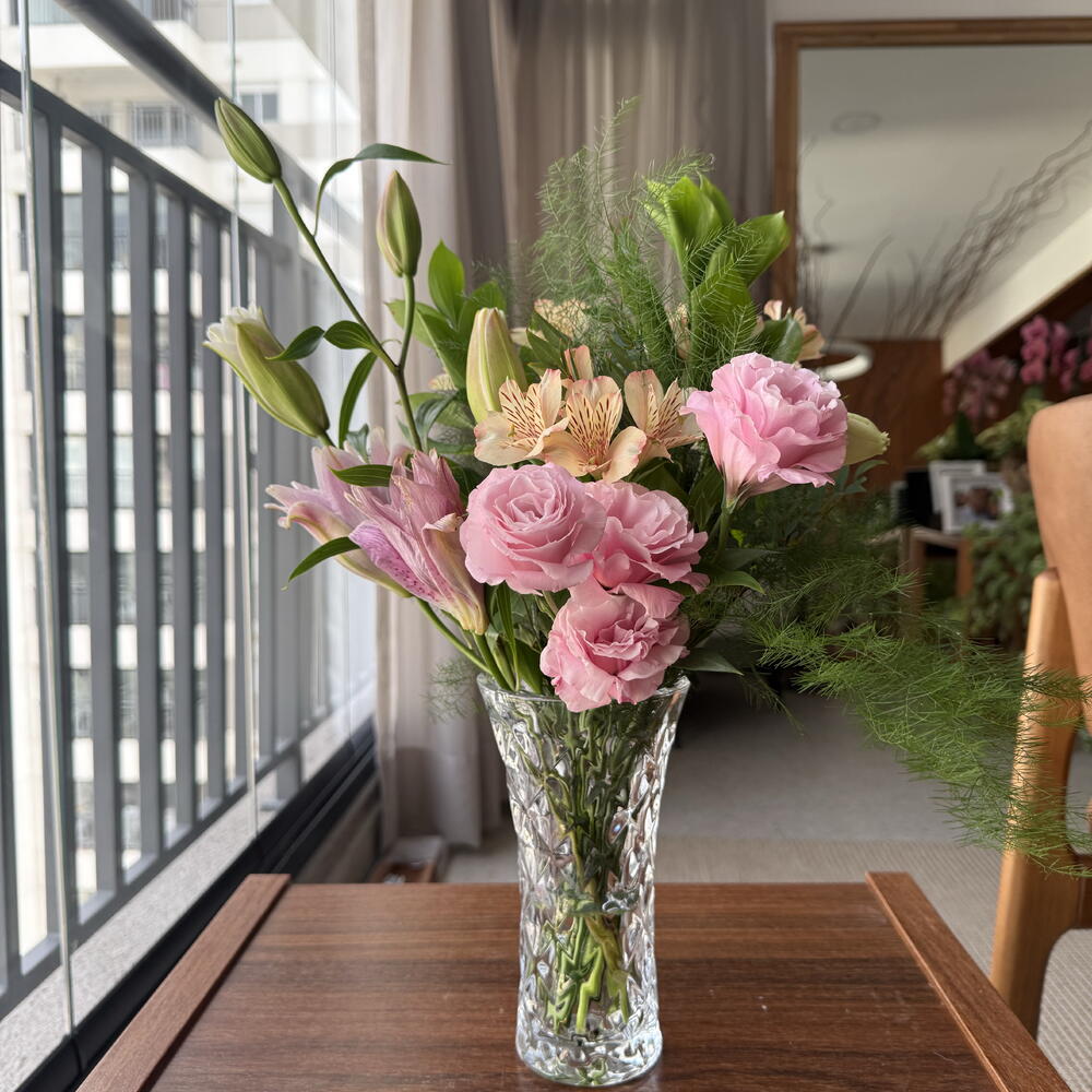 Este produto encantador vem com 20 flores variadas cuidadosamente arranjadas em um vaso de vidro elegante. As flores são escolhidas por nossos especialistas floristas para criar uma composição impressionante que irá adicionar um toque de cor e frescor a qualquer ambiente. O vaso de vidro proporciona um look moderno e é durável o suficiente para ser usado repetidamente por muitos arranjos futuros. Ideal para embelezar sua casa ou como presente para uma ocasião especial.