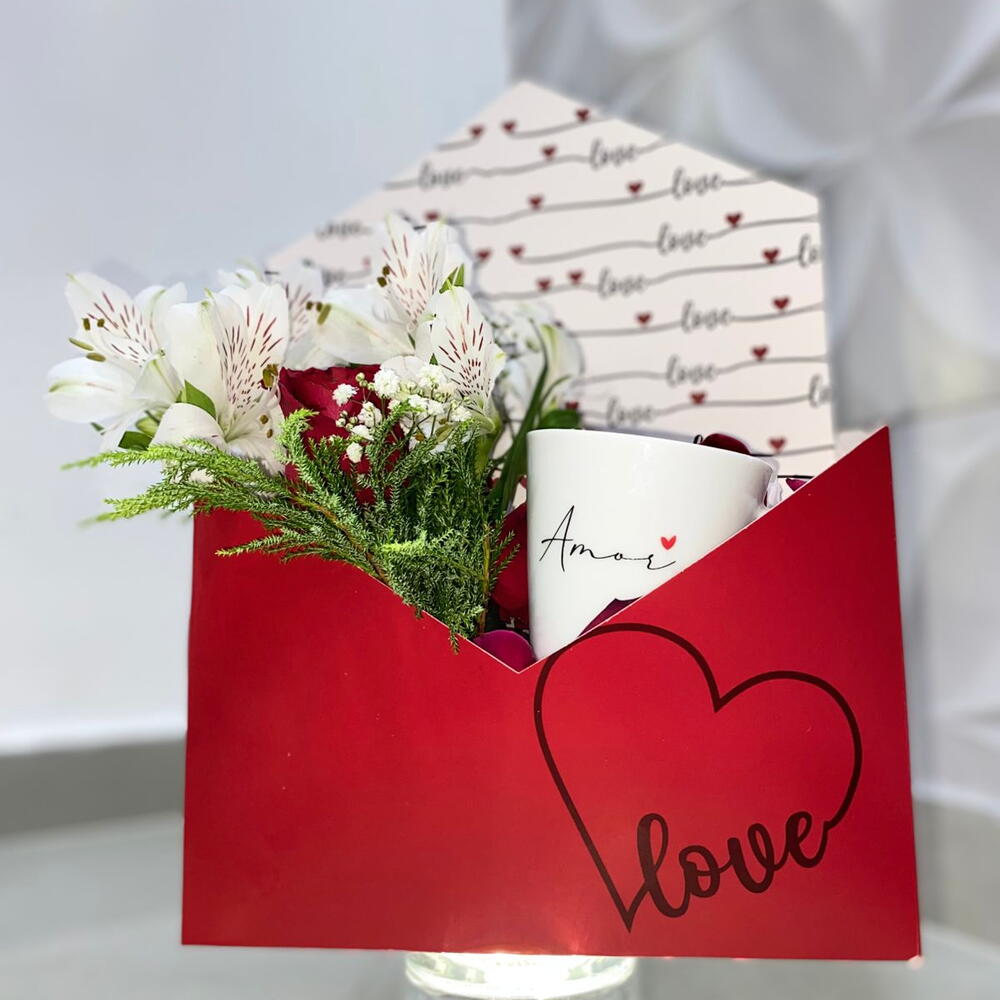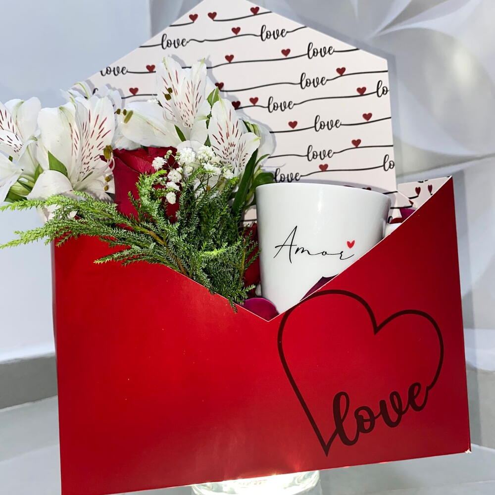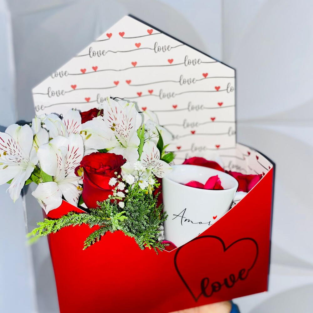 flores - 1 pcs xícara porcelana - 1 pcs caixa box carta vermelhas - 1 pcs