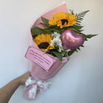 Esse belo buquê é uma combinação vibrante e alegre de 2 girassóis, 8 folhagens tango e uma escolha de cores de astromelias, dependendo do que está disponível no dia. A mistura de cores e texturas faz deste buquê uma escolha perfeita para qualquer ocasião, seja um aniversário, um agradecimento especial ou simplesmente para iluminar o dia de alguém. Prepare-se para impressionar com este lindo arranjo floral.