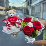 Este impecável buquê é uma combinação perfeita de indulgência e romantismo. Contendo sete unidades de deliciosos chocolates variados prontos para encantar o paladar, conjecture a felicidade com a adição de um mimoso ursinho de pelúcia (modelos disponíveis para consulta). Três belas rosas adicionam um toque de clássico charme, e uma unidade de folhagens frescas proporciona um toque de natureza verdejante. Tudo isso é cuidadosamente embalado em uma charmosa embalagem com dois laços decorativos, criando um presente que é tão agradável de apresentar quanto de receber. Agentes, na descrição do produto, este buquê.