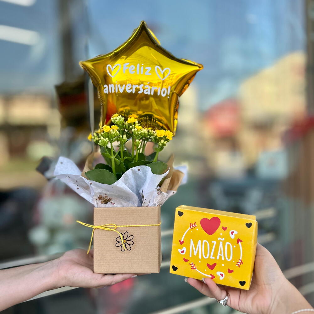 caixa com bombons - 5 pcs kalanchoe com balão feliz seu dia - 1 pcs