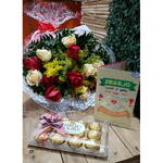 Este kit de presente é a escolha perfeita para mostrar o seu carinho e apreço. Composto por um lindo buquê com 8 rosas mistas, cuidadosamente selecionadas e arranjadas, complementadas por lindas folhagens. O buquê é habilmente acondicionado em uma embalagem elegante e amarrado com um laço charmoso. Além disso, inclui um cartão para que você possa personalizar a sua mensagem e uma deliciosa caixa de Ferrero Rocher para adicionar um toque doce ao seu presente. Este kit de presente é mais que um simples presente, é uma experiência única e memorável.