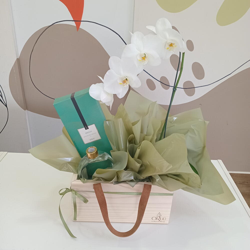 Este kit de presente é composto por elementos cuidadosamente selecionados para encantar e surpreender. Inclui uma deslumbrante orquídea, conhecida pela sua beleza e elegância, perfeitamente acondicionada em uma embalagem sofisticada. A caixa inclusa oferece um charme adicional, tornando este set um presente ideal. O difusor de ambiente proporciona um toque final, preenchendo a casa do destinatário com um aroma sutil e agradável. Este é o presente perfeito para expressar apreço e carinho em qualquer ocasião especial.