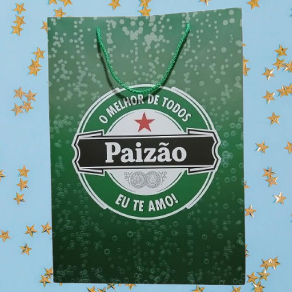 cartão de mensagem - 1 pcs heineken 250ml - 2 pcs sacola personalizada paizão - 1 pcs squeeze paizão - 1 pcs caneca paizão - 1 pcs jogo de ferramentas 24 peças - 1 pcs tábua de petisco de madeira - 1 pcs petiscos deliciosos (variados) - 3 pcs