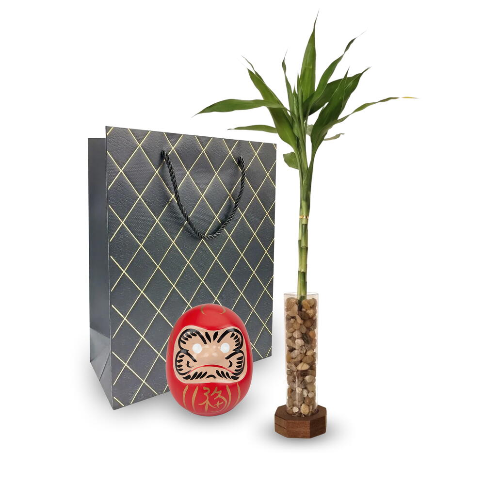 Kit Presente Suporte Rustico com Bambu da Sorte + Boneco Daruma