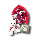 lindo buquê de 12 rosa vermelhas com gipsofila - 1 pcs ferrero rocher 50gr - 1 pcs linda pelúcia ted pequena - 1 pcs