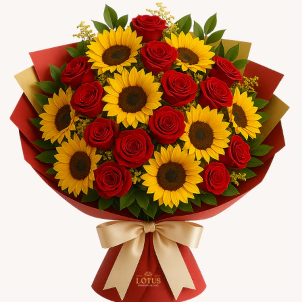 Ilumine o dia de alguém especial com o Mega Buquê Raio de Sol, uma explosão de cores vibrantes e energia positiva! Girassóis – Símbolos de alegria, vitalidade e energia positiva. Rosas vermelhas – Representam amor, paixão e romantismo intenso. Mini rosas amarelas – Delicadas e cheias de charme, traduzem felicidade e afeto. Folhagens nobres – Um toque de frescor e sofisticação para complementar esse arranjo exuberante. Perfeito para aniversários, celebrações, declarações de amor e momentos inesquecíveis! Entrega super-rápida em São Paulo e região!