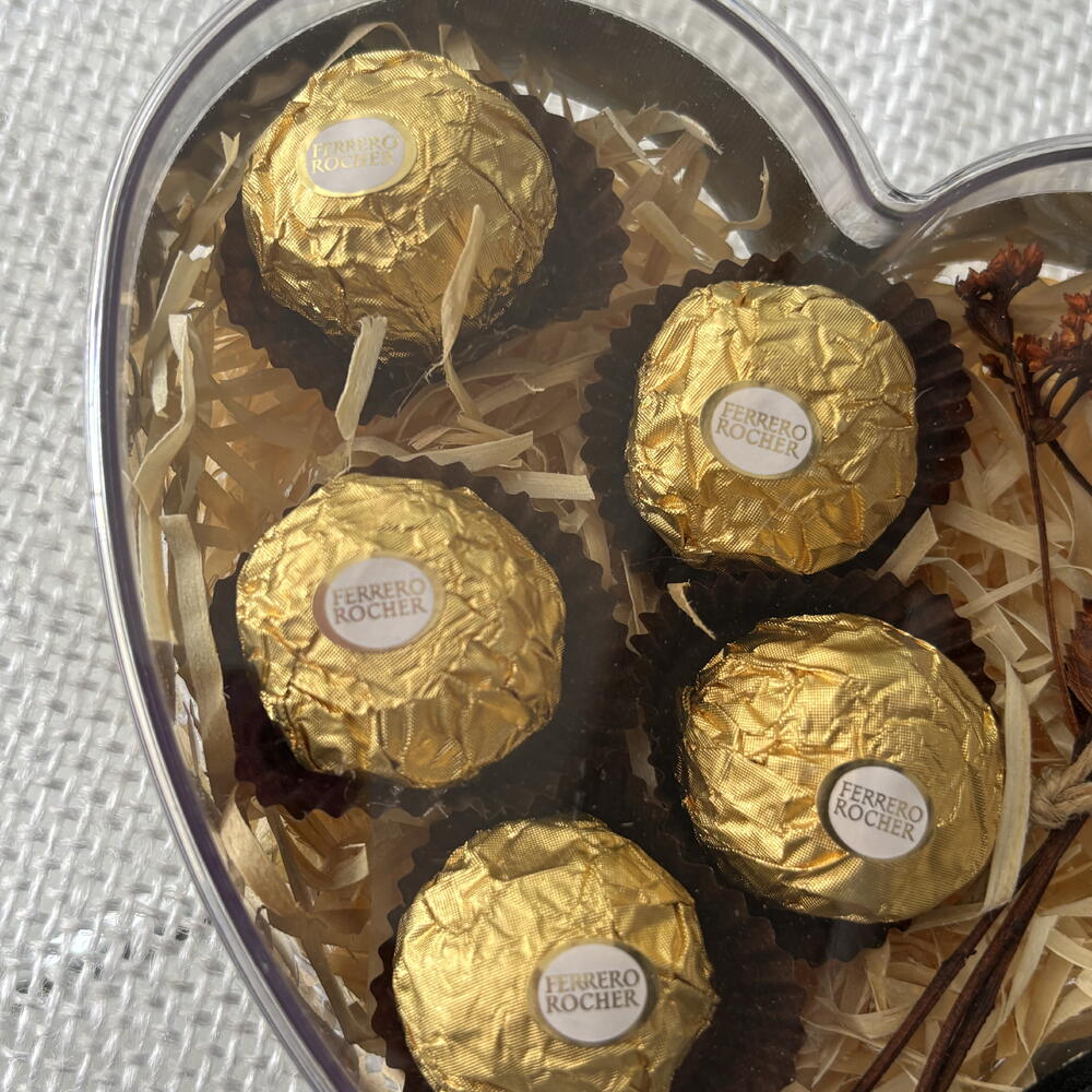 ferrero rocher - 5 pcs raminho desidratado - 1 pcs base coração acrílico - 1 pcs