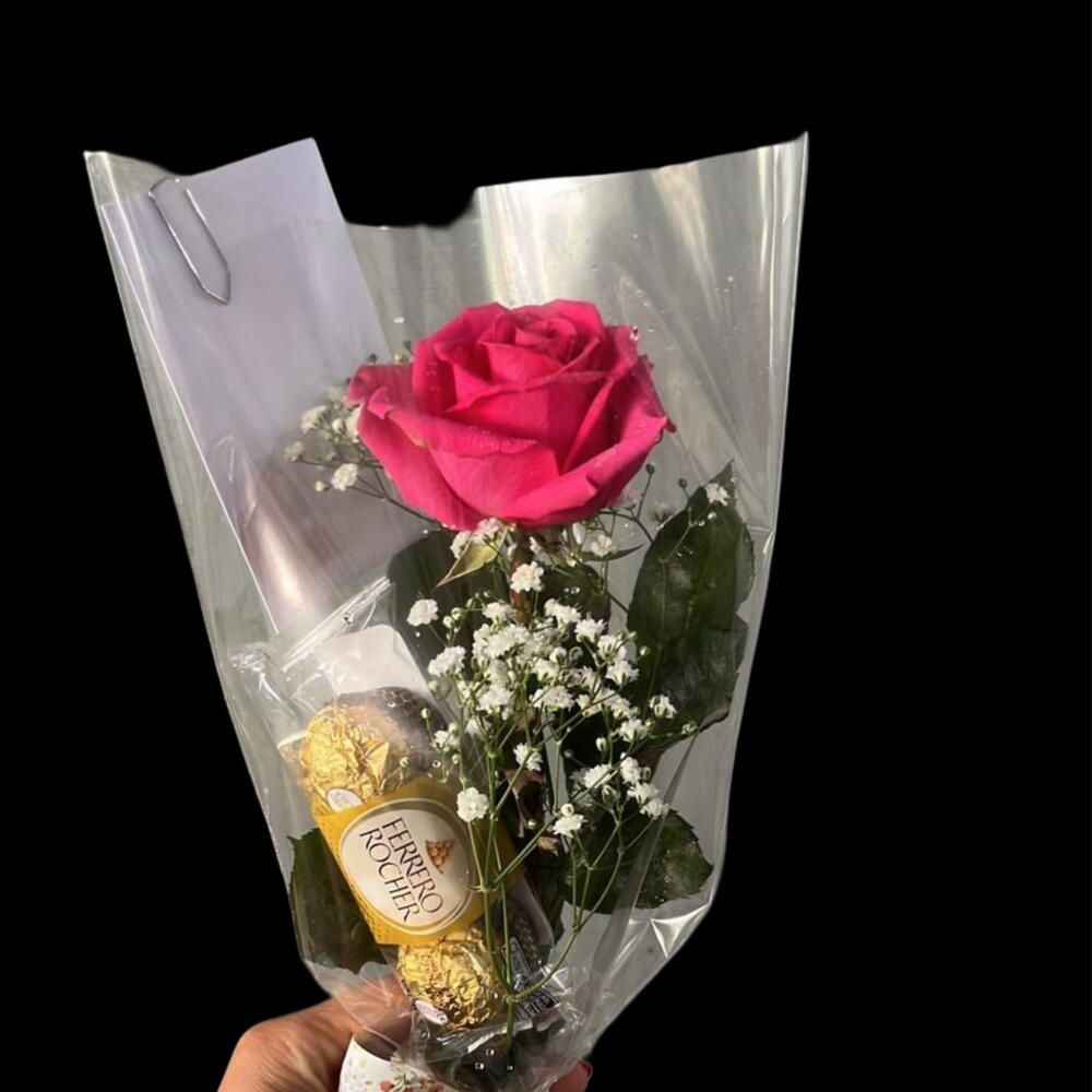 Desperte os sentidos com este presente encantador, que combina a delicadeza de uma rosa singular com a indulgência de três irresistíveis chocolates Ferrero. O presente ideal para expressar seu carinho e mostrar um gesto de sofisticação.