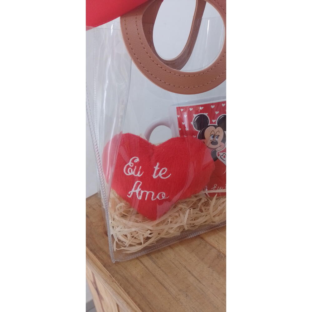 Este Kit de Presente é a maneira perfeita de demonstrar seu amor. Composto por uma singular caneca Eu te amo apresentando os adoráveis Minie e Mickey, um coração de pelúcia aconchegante com a doce mensagem Eu te amo, e uma elegante bolsa unisex, é um conjunto repleto de carinho. Seja para aniversários, datas comemorativas ou apenas porque sim, este conjunto é o presente perfeito para surpreender e encantar!