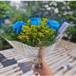 Lindo Mini Buque com 3 rosas coloridas e folhagens naturais, acompanha cartinha com sua mensagem. (editamos sua mensagem em fonte manuscrita, imprimimos sua mensagem em folha ofício, com desenhos de acordo com o tema, enrolamos e fechamos com laço de fita de cetim). A embalagem do buquê poderá mudar de acordo com a disponibilidade do mercado.