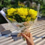 flores - 3 pcs folhagens - 1 pcs embalagem celofane - 1 pcs laço rústico - 1 pcs