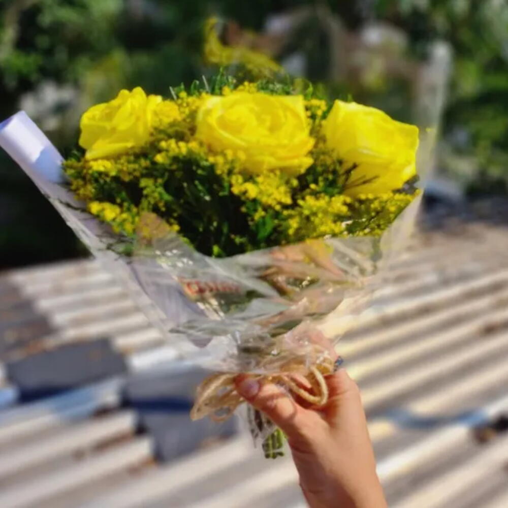 Lindo Mini Buque com 3 rosas coloridas e folhagens naturais, acompanha cartinha com sua mensagem. (editamos sua mensagem em fonte manuscrita, imprimimos sua mensagem em folha ofício, com desenhos de acordo com o tema, enrolamos e fechamos com laço de fita de cetim). A embalagem do buquê poderá mudar de acordo com a disponibilidade do mercado.