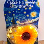 Surpreenda alguém especial com esta sofisticada combinação de flores e chocolates. Este pacote exclusivo inclui um encantador Girassol de Cetim - uma declaração perfeita de apreciação e carinho. Para um deleite doce e indulgente, incluímos duas unidades de Ferrero Rocher, perfeitas para satisfazer qualquer desejo de chocolate. E para completar o pacote, uma Caixa Noite Estrelada, a maneira ideal de apresentar este presente único e pensativo.