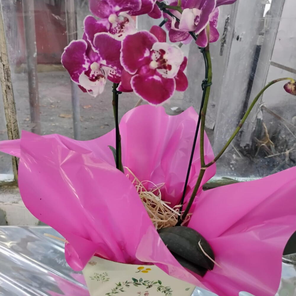 Linda orquídea com embalagem de presente e laço rústico, perfeita para todas as ocasiões.