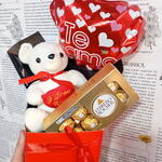 Este conjunto de presentes com chocolate é tudo o que você precisa para presentear alguém especial. Ele vem com 8 unidades de Ferrero Rocher, o mundialmente conhecido e amado bombom. Além disso, também está incluso um brinde único, um Ferrero de Amar em edição limitada. O kit também acompanha um adorável urso de pelúcia, um símbolo universal de carinho e conforto. Junto com o urso, temos um balão, adicionando um toque de festividade. Tudo é bem organizado em uma caixa única e embalado com perfeição para lhe dar a melhor experiência de presente. Ideal para aniversários, datas especiais ou apenas para expressar seu amor e apreciação. Este conjunto de presentes é garantia de alegria e sorrisos.