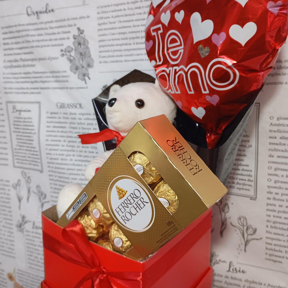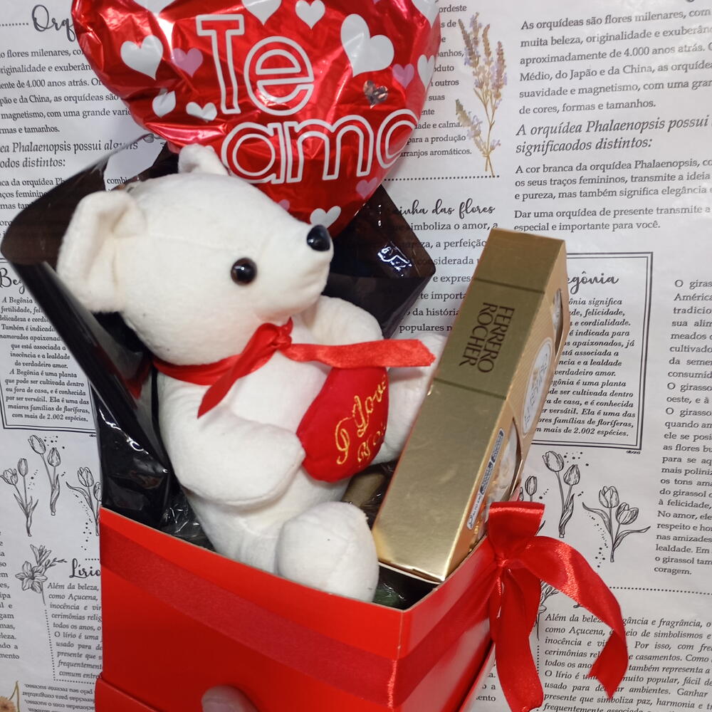 Este conjunto de presentes com chocolate é tudo o que você precisa para presentear alguém especial. Ele vem com 8 unidades de Ferrero Rocher, o mundialmente conhecido e amado bombom. Além disso, também está incluso um brinde único, um Ferrero de Amar em edição limitada. O kit também acompanha um adorável urso de pelúcia, um símbolo universal de carinho e conforto. Junto com o urso, temos um balão, adicionando um toque de festividade. Tudo é bem organizado em uma caixa única e embalado com perfeição para lhe dar a melhor experiência de presente. Ideal para aniversários, datas especiais ou apenas para expressar seu amor e apreciação. Este conjunto de presentes é garantia de alegria e sorrisos.