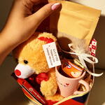 balão de coração - 1 pcs sache de capuccino - 1 pcs sache de chá – 2g - 1 pcs caixa envelope (diversas cores e embalado em saco celofane com um lindo laço de cetim) - 1 pcs açúcar união sachês - 2 pcs pão de mel ou biscoitos amanteigados - 1 pcs saco de celafane e o laço - 2 pcs xícara porcelana 170ml. - 1 pcs laço decorado - 1 pcs ursinho de pelúcia 22cm - 1 pcs
