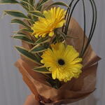 Esse charmoso buquê é composto por 2 flores de gérbera, situadas delicadamente em uma embalagem de kraft. Adornado com um elegante laço e folhagens para um toque adicional de natureza, este produto é uma bela demonstração de carinho e apreciação. Disponível numa variedade de cores para se adequar à sua preferência - por favor, consulte o vendedor para obter mais detalhes. Por favor, note que o produto final pode variar ligeiramente.