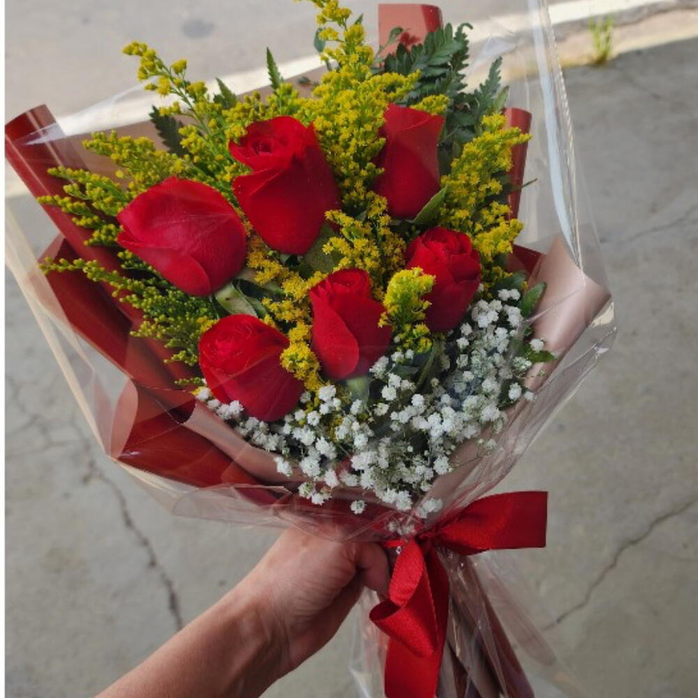 Envolva-se na magia dos buquês com este deslumbrante produto. Com os principais atores - Tango e Mosquitinhos combinados em harmonia, o buquê vira uma ode à criação floral. Duas únicas rosas vermelhas, simbolizando o amor profundo e a paixão, são a jóia da coroa neste conjunto. Seis unidades bem harmonizadas adicionam volume e tornam o conjunto uma visão para os olhos doloridos. A embalagem, em uma unidade, é minimalista e realça a beleza das flores. Além disso, apresenta um toque de LA para injetar uma essência única, exclusivamente encontrada neste produto. Este buquê é um testemunho verdadeiro e soberbo ao esplendor da natureza.