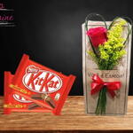 Que tal surpreender com essa linda rosa natural num lindo cartão acompanhada de 2 Kikat. As folhagens acompanhamentos de composição que podem ser substituídas por outras de igual ou maior valor, de acordo com a disponibilidade.