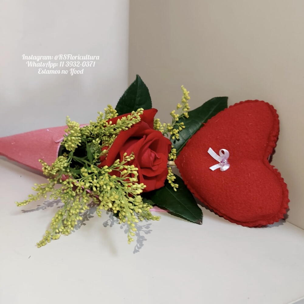 Este encantador buquê possui um mini coração de pelúcia que expressa seu amor de forma terna e atraente. Combinado com uma única rosa na cor do dia, simbolizando a singularidade e a beleza da relação que você compartilha. A folhagem adiciona um toque de natureza e frescor ao buquê, enquanto a embalagem cuidadosamente escolhida mantém tudo junto, garantindo uma apresentação elegante e requintada.