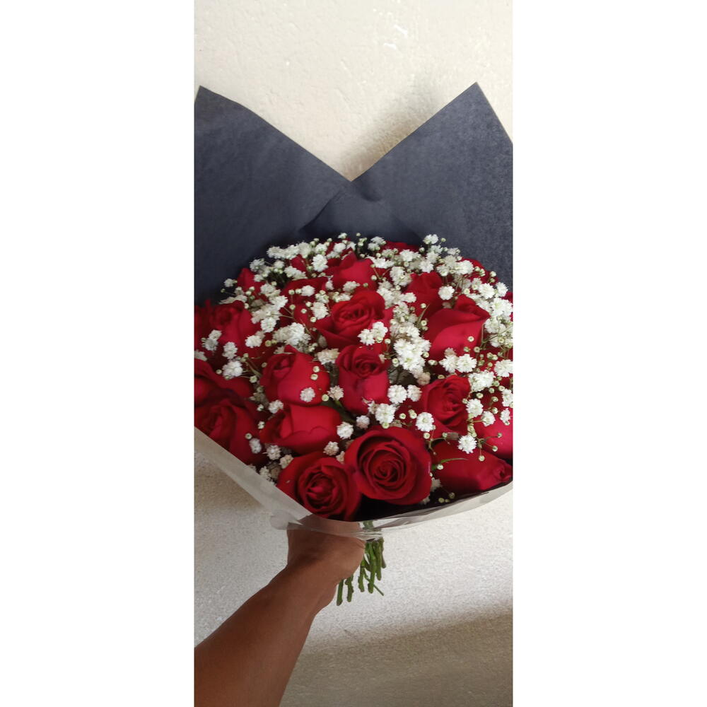 Deslumbre-se com este buquê impecavelmente montado, composto por 24 deslumbrantes rosas vermelhas e 3 unidades de delicada gypsofila. Personificando romance e delicadeza, acompanha-se de uma exclusiva embalagem de designer que proporciona um charme adicional. A peça final do conjunto é um lindo laço, que adiciona uma pitada de elegância. Perfeito para qualquer ocasião em que você queira mostrar seu amor e apreço.