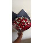 embalagem de designer - 1 pcs gypsofila - 3 pcs laço - 1 pcs rosa vermelhas - 24 pcs