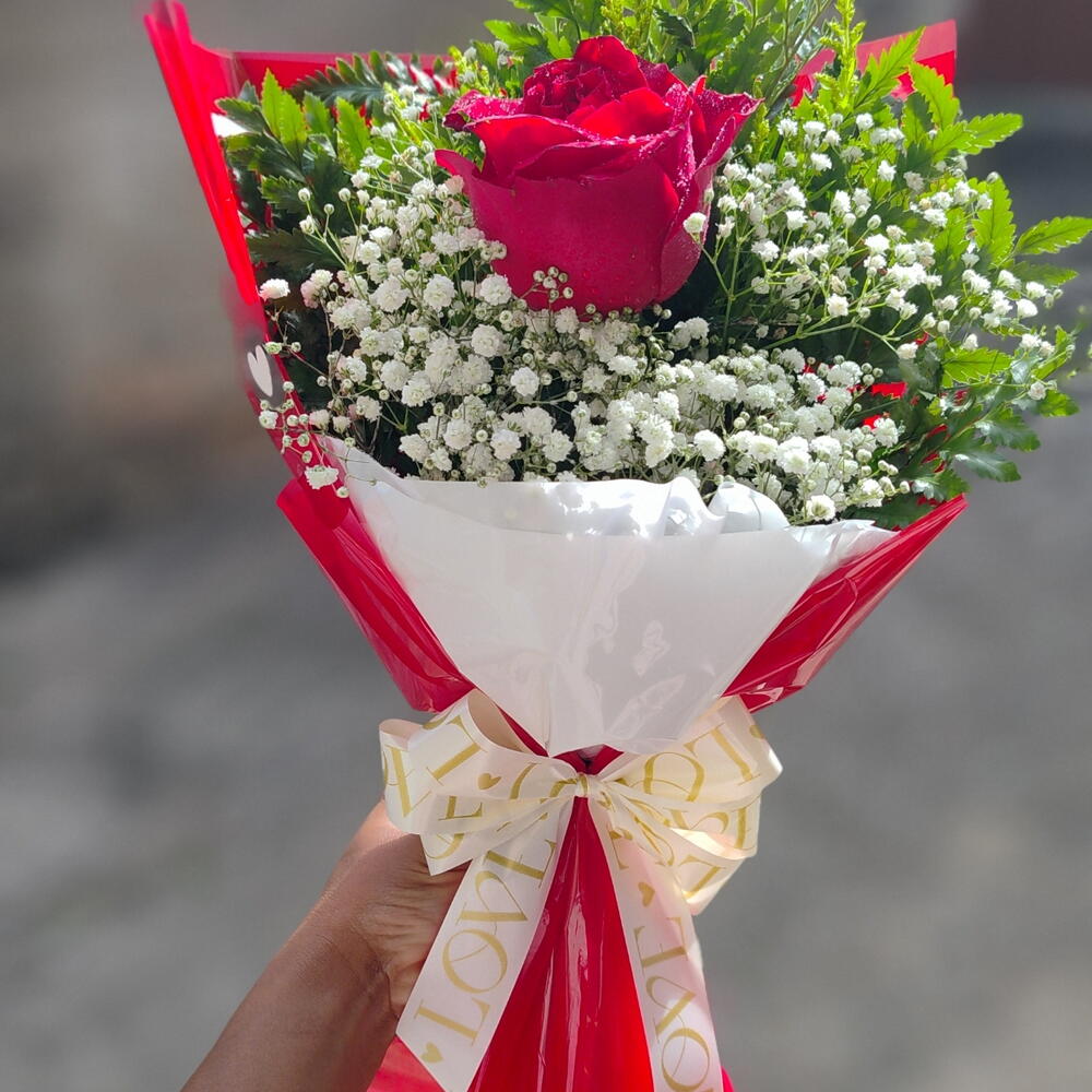 Este encantador buquê é composto por uma única, mas vibrante Rosa Natural Tango, acompanhada de gipsófila, delicadamente organizadas numa embalagem meiga de aproximadamente 35 cm de altura. A elegância e sofisticação são realçadas pelas cores variáveis das embalagens e laços, que são cuidadosamente selecionadas de acordo com a disponibilidade, proporcionando um toque surpresa a cada aquisição. Este é um presente verdadeiramente único e encantador.