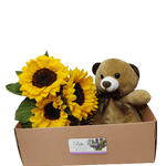 caixa presente - 1 pcs pelúcia ursinho - 1 pcs girrassóis - 3 pcs