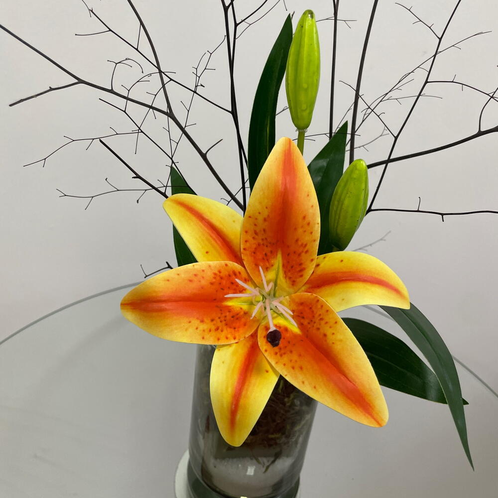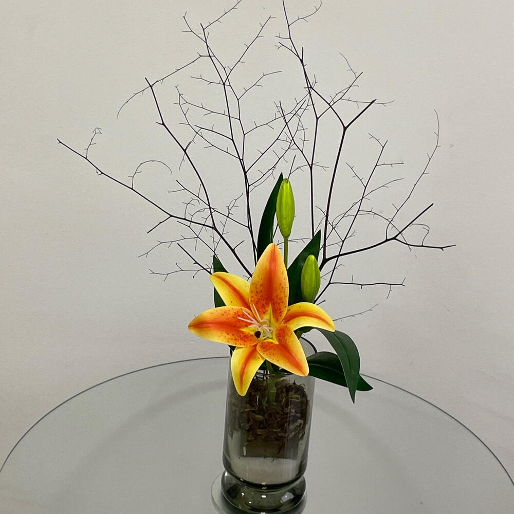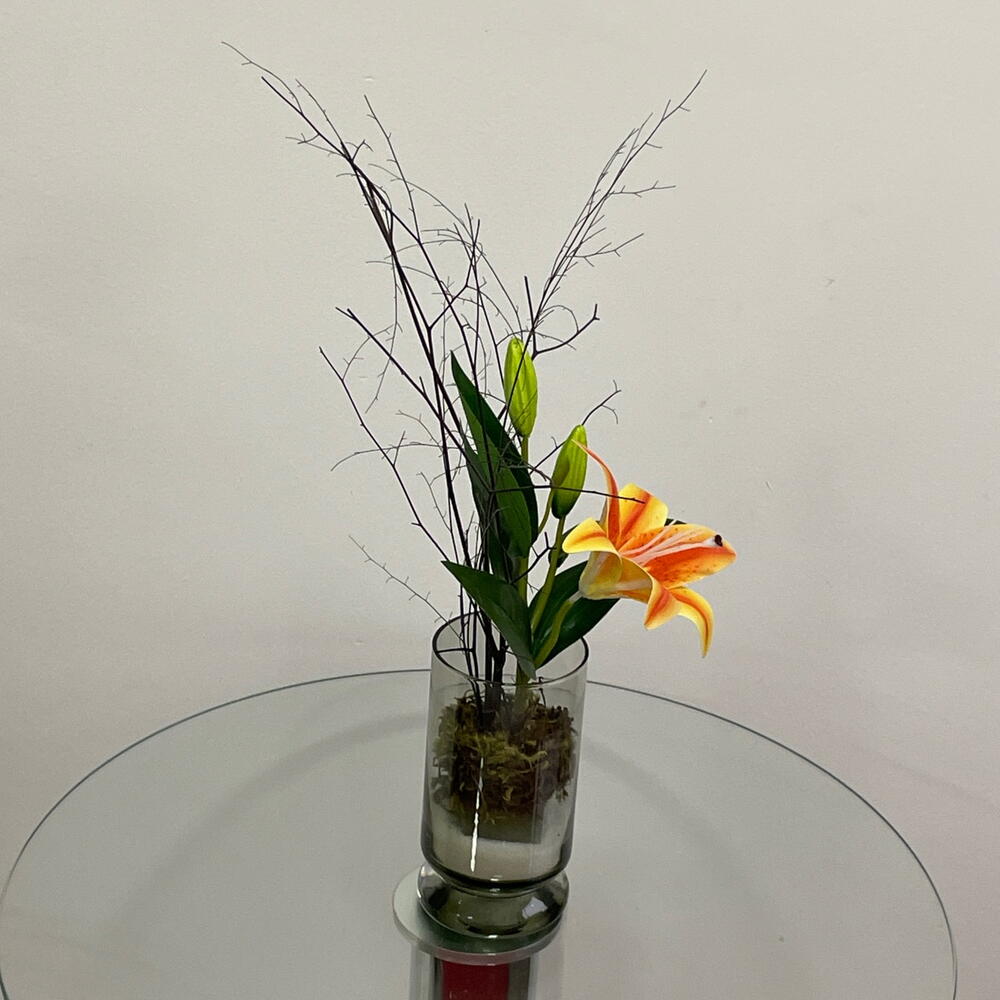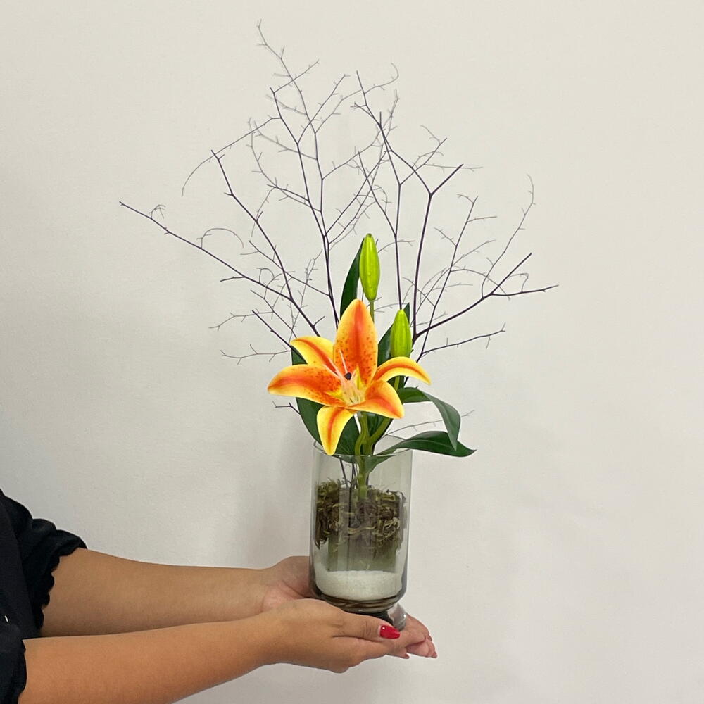 Este encantador arranjo de flores é composto por uma deslumbrante flor permanente amarela, que simboliza a alegria e a amizade. Complementado por belas folhagens para adicionar um toque de luxo. Tudo arranjado de forma artística num vaso de vidro elegante, criando um ponto focal de verdadeira beleza para qualquer ambiente. Este arranjo de flores é a escolha perfeita para dar um toque de cor e frescura ao seu espaço.
