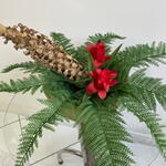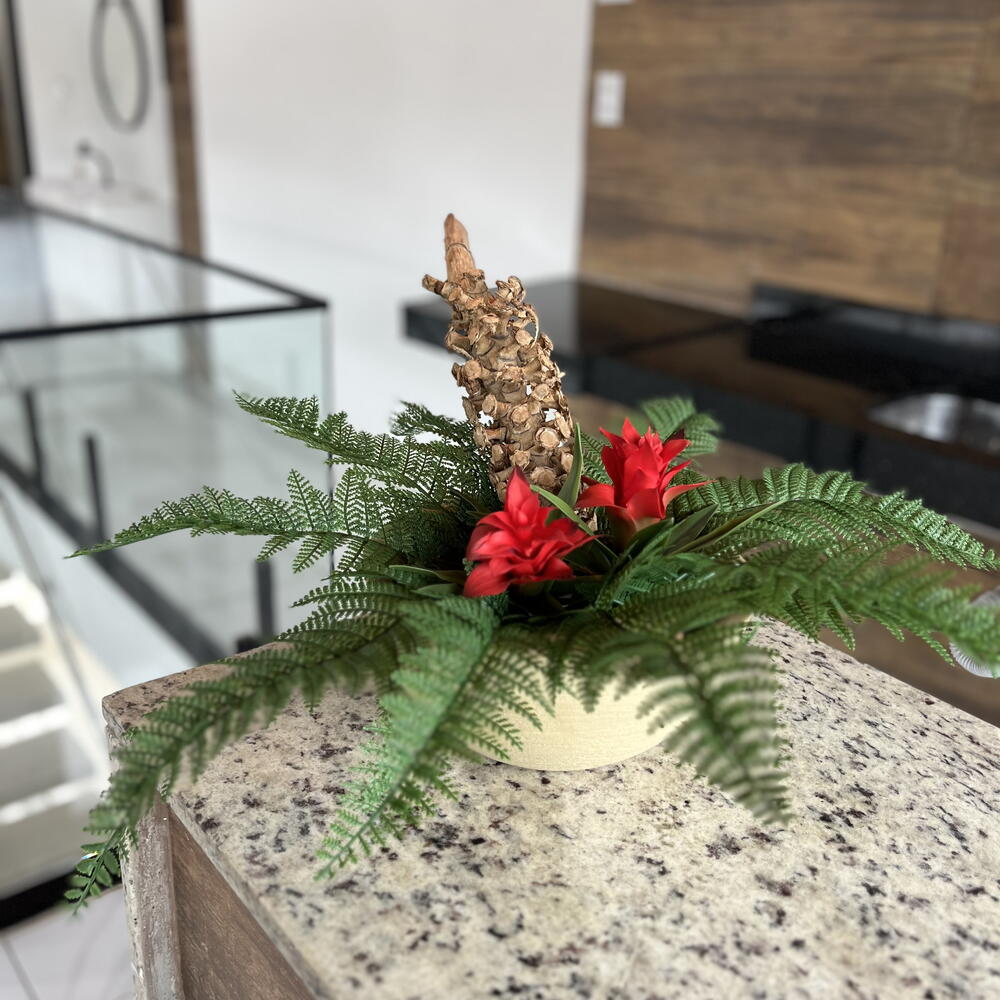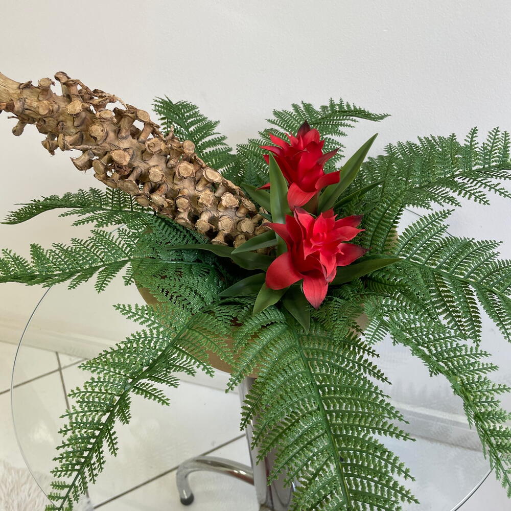 Encante seu ambiente com a beleza perene deste arranjo de flores permanentes, complementado por uma luxuriante folhagem. Cuidadosamente montado à mão, cada uma dessas peças é única e trará um toque de elegância e sofisticação para sua casa ou escritório. Uma peça de decoração atemporal que permanecerá vibrante e fresca ao longo do ano, sem a necessidade de cuidados constantes. Este arranjo será um acréscimo encantador em qualquer espaço, destacando-se pela sua beleza e graciosidade.