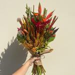 Adicione um toque exótico à sua coleção floral com este buquê tropical único. Cada peça é cuidadosamente selecionada para criar uma combinação vibrante e exuberante de cores e texturas. Este buquê irá instantaneamente transportar você para um paraíso tropical com apenas um olhar. Perfeito para presentear alguém especial ou para decorar o seu próprio espaço.