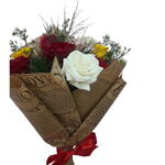 embalagem - 1 pcs rosa branca - 1 pcs rosa amarelas - 2 pcs laço - 1 pcs rosa vermelhas - 1 pcs rosa ambiance - 2 pcs aster e folhagem - 1 pcs
