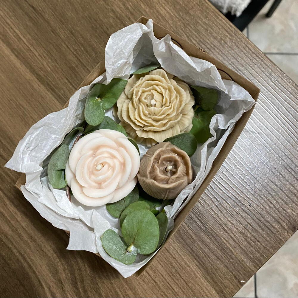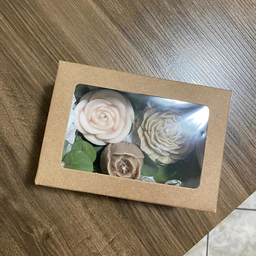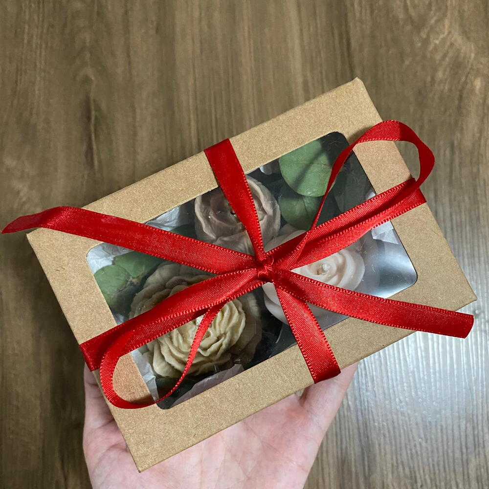 Encante alguém especial com este delicado Kit de Velas Aromáticas, perfeito para criar momentos de aconchego e bem-estar. ✨ Produzidas de forma 100% artesanal, com cera vegetal, as velas garantem uma queima limpa e segura, além de um cuidado especial com cada detalhe. As essências premium proporcionam uma experiência sensorial envolvente, preenchendo o ambiente com aromas sofisticados e acolhedores. O kit contempla 3 velas aromáticas em formato de flores, totalizando 115g, em combinações sortidas dos aromas Cereja com Avelã e Macadâmia com Cereja. A apresentação é feita em uma caixa de papel kraft, delicadamente decorada com folhas de eucalipto, trazendo um toque natural e charmoso; finalizada com um laço vermelho. Surpreenda com uma excelente opção de presente cheio de carinho e elegância. 🎁🌸
